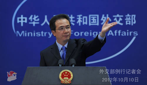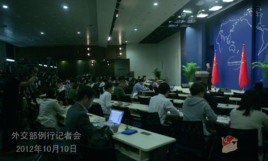 人民网北京10月10日电 2012年10月10日,外交部发言人洪磊主持例行记者会。