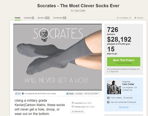 现年23岁、有过美国空军学院学习经历的卡梅隆·卡特所创办的公司致力于制造出永远不会磨出洞的袜子,而卡特要实现这个目标的独门诀窍就是采用制造防弹背心的军用材料——凯夫拉(Kevlar),从而大幅提高袜子的耐磨性。卡特最初把该项目发布在著名融资平台Kickstarter上来募集研发及生产资金,最初设定的目标值是1万美元(约合人民币6.2万元),如今已经得到高达2.8万美元的融资。