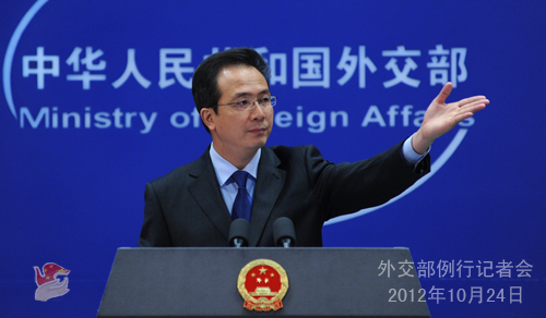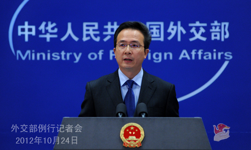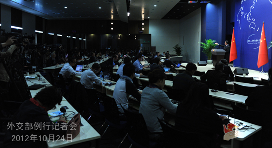 2012年10月24日,外交部发言人洪磊主持例行记者会。