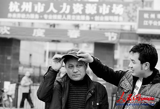 某年春节,站在浙江杭州人才市场门口的农民工(资料图,来源:人民网浙江频道)
