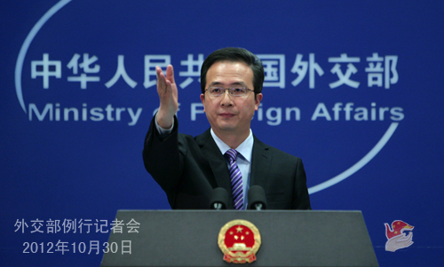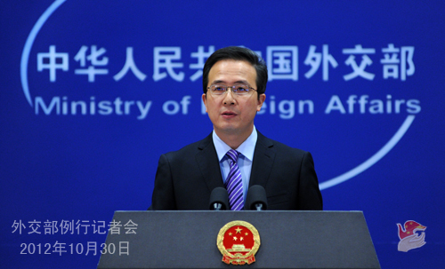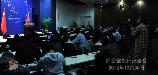 2012年10月30日,外交部发言人洪磊主持例行记者会。