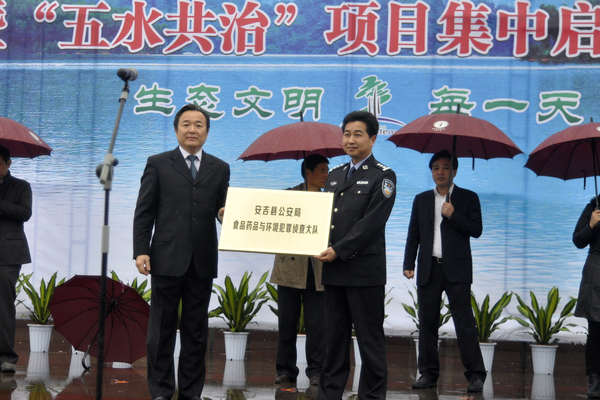 【张志龙】是的。除了在3月25日我县第十一个生态日暨“五水共治”项目集中启动仪式上,县委书记单锦炎亲自为食品药品与环境犯罪侦查大队授牌外。5月27日,我县还专门召开了食品药品与环境犯罪侦查工作座谈会,县委常委、公安局长吴佩勋,副县长任贵明、张云威及十一个部门的“一把手”参加座谈会。6月9日,我县召开了全县深入推进“五水共治”、“山青水绿”暨严厉打击环境与食品药品违法犯罪专项行动动员大会。会上,单锦炎书记就此次严打专项行动提出要求,要求不断深化认识,统一思想明职责;健全工作机制,在精细管理、有力打击、合成作战、常态长效、德法并举上狠抓工作落实。