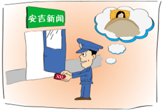 王润发是江西景德镇人,来安吉已经12年了,一直从事保安工作,工资不高,一个月也就一千来块钱。为了多攒点钱,今年6月份开始,他又找了一份工,一边在中汇大酒店当保安,一边在塔塔科技有限公司做保卫工作,连轴转,平均一天工作16个小时。“从晚上23点上到第二天早上8点,之后回家休息几个小时,下午从16点开始上到晚上23点。结束后,紧接着去另一家上班,从23点到第二天早上8点。”王润发说。
