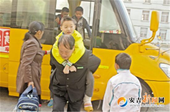 杨师傅在公交公司工作多年,开车几十年,曾经是安吉至上海、杭州、宜兴等方向的长途客车司机。因为表现优异,两年前被选中成了一名校车司机,今年开始担任昆铜小学的校车司机。每天早上,他负责将孩子们一一从家中接到学校,平日三趟,周一四趟,晚上放学再把孩子们安全送回家。现如今,他还多了一样活儿——每天早上将受伤的学生陈怡川背进教室。