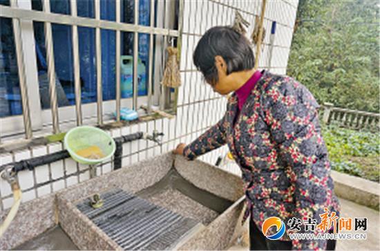 这一口洗衣池可是俞凤娥的生活好帮手。“你看,右边水槽洗第一遍衣服,左边洗第二遍,剩下的水,我可以用来拖地、冲厕所。”俞凤娥说,以前没建水池前,就准备两只大水桶,用来装洗衣服、洗漱剩下的水,“每一滴水都要用起来。”