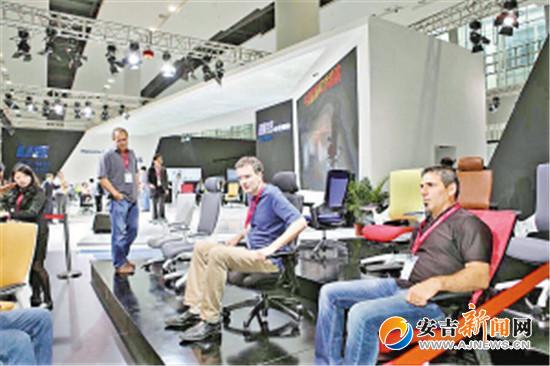 国外客户在体验永艺股份新推出的米勒特座椅