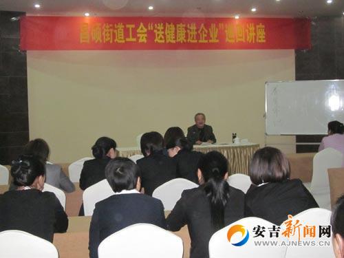 今天下午,昌硕街道工会邀请县人民医院退休医生到国际假日酒店,为女职工上了一堂健康养生知识的专题讲座。