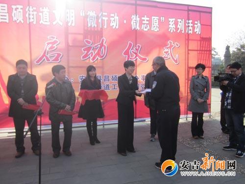 今天上午,昌硕街道在城市社区启动文明“微”行动。县委常委、宣传部长王有娣,县政协副主席、县总工会主席朱玉成和有关部门负责人,以及广大志愿者参加启动仪式。王有娣宣布文明“微行动”启动。