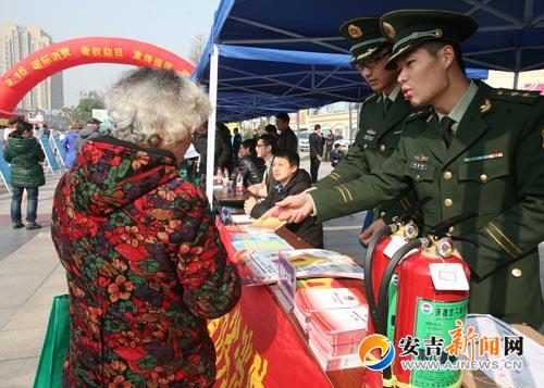 据了解,此次活动共有工商、质监、药监、卫生等14个政府职能部门,16家企事业单位参与。除生态广场主会场外,另设百汇、梅溪、孝丰3个分会场,并在广播电台同步接受咨询及投诉。截止11点,共计受理投诉27起,接待市民咨询2412人次,发放宣传资料8000余份,免费维修家用电器74起。县人大副主任杨路侠参加活动。