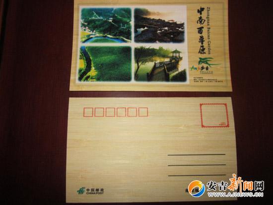 据了解,首套竹制明信片六张,分别是中南百草原、藏龙百瀑、江南天池、浙北大峡谷、中国大竹海、竹博园等六个旅游景点。国家邮政总局已通过设计方案,编号为AJ6-1至6。