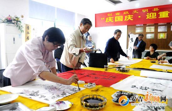 今天,天目社区与昌硕社区开展创建省文明县暨“庆国庆·迎重阳”书法绘画活动,来自两个社区的20多名老年书法绘画爱好者参与活动。